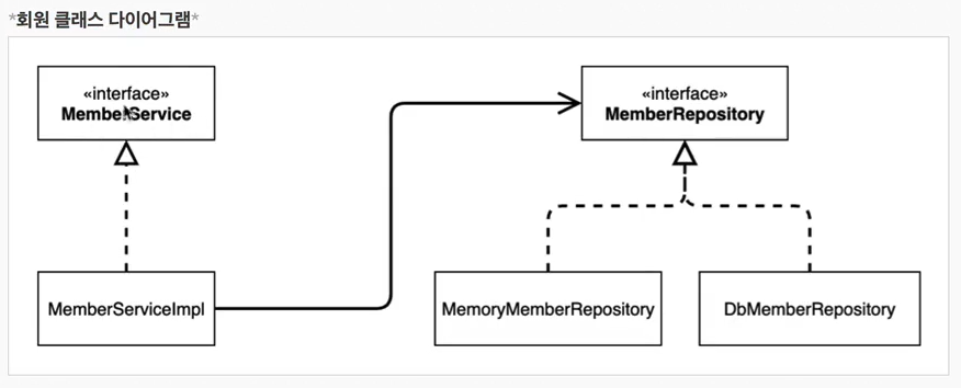 MemberServiceImpl → MemberRepository, MemoryMemberRepository ๋๊ฐ๋ค ์์กดํจ