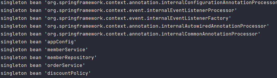 - @Bean ์ด ๋ถ์ ๋ฉ์๋์ ๋ช ์ ์คํ๋ง ๋น์ ์ด๋ฆ์ผ๋ก ์ฌ์ฉ(memberService , orderService)