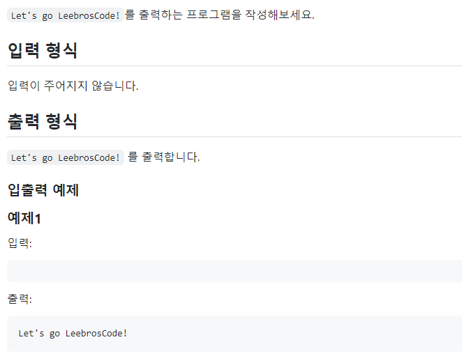 System.out.print("Let's go LeebrosCode!");